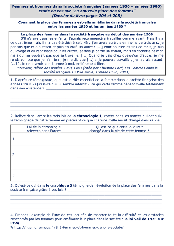 Activités interactives sur la loi sur la légalisation de l'avortement en France défendue par Mme Simone Weil, ministre de la santé.