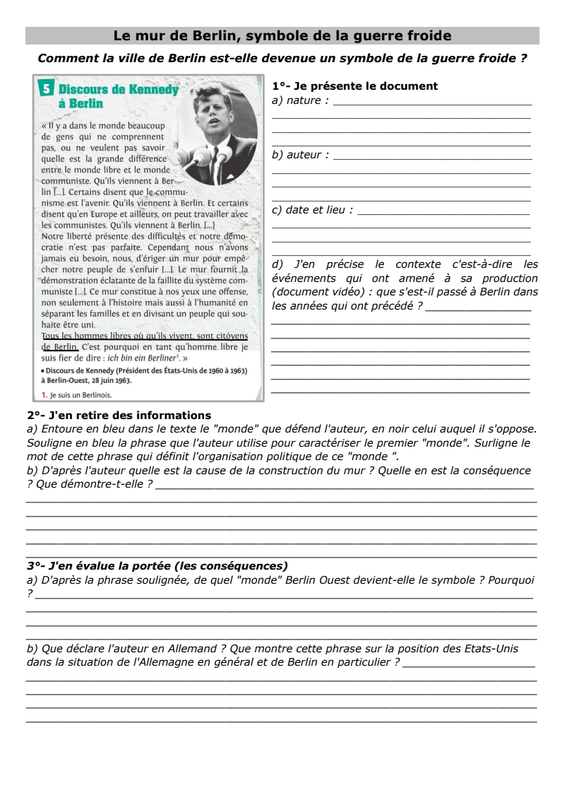 Fiche synthèse sur l'Allemagne et Berlin durant la guerre froide