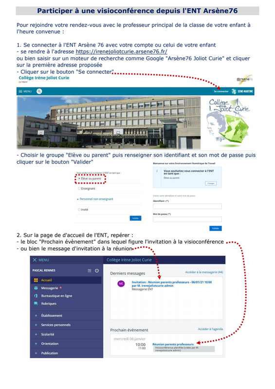 participer à une visioconférence à l'invitation d'un professeur depuis l'ENT
