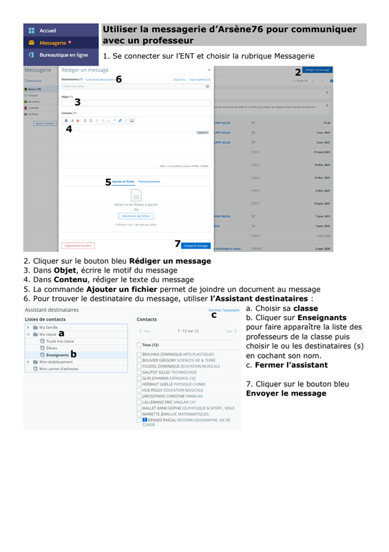 Fiche guide pour envoyer un mail depuis la messagerie de l'ENT Arsène76
