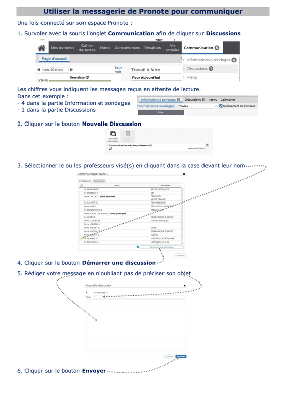 Une fiche guide afin d'utiliser la messagerie de PRONOTE pour communiquer avec les professeur