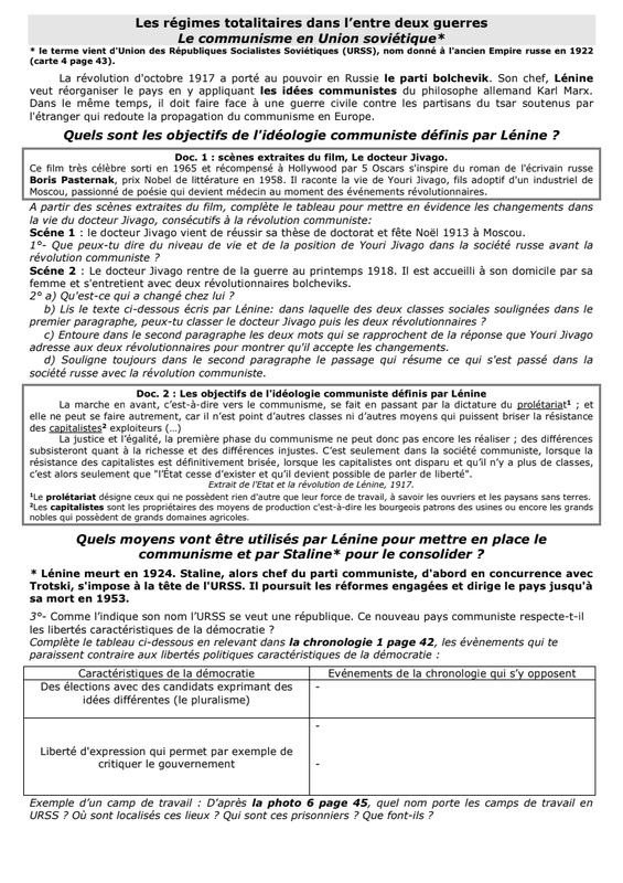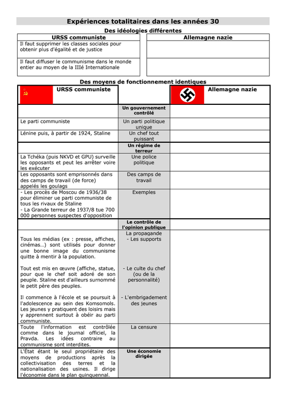 3H2. Tableau de synthèse sur les régimes totalitaires