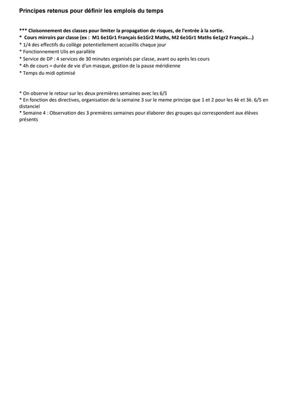 le plan de circulation des élèves au sein du collège - les principes retenus dans la redéfinition des emplois du temps