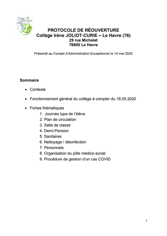 Protocole de réouverture du collège