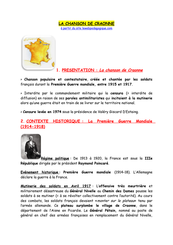 D'autres suggestions de chansons sur la Première Guerre mondiale