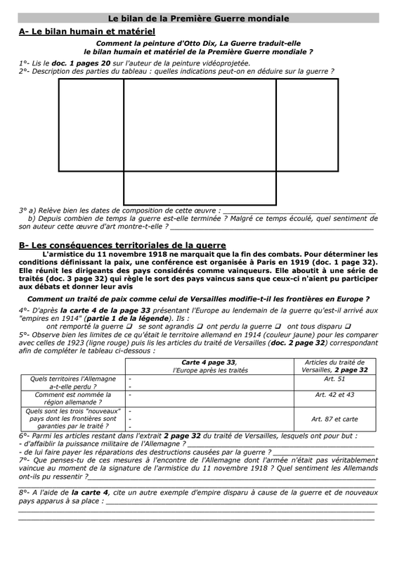 Diaporama utilisé en classe comme support de la fiche d'activités sur le bilan de la guerre